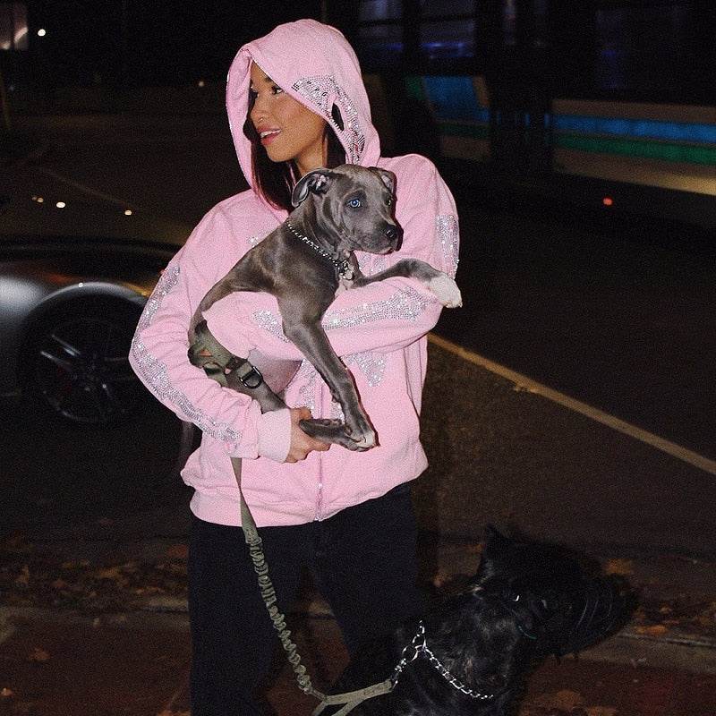 Rhinestone Skeleton Bluza — wysoka jakość i miejski charakter. Podkręci każdą stylówkę Y2K.
